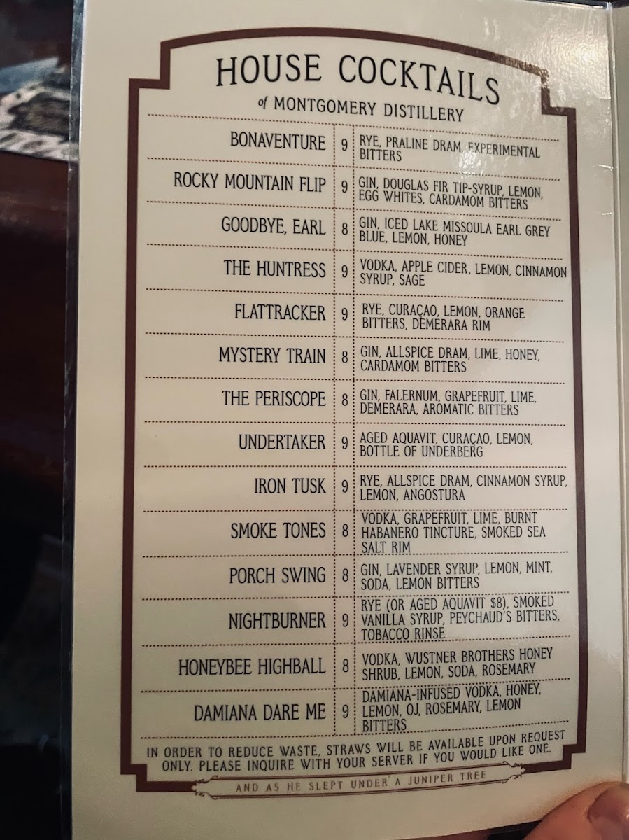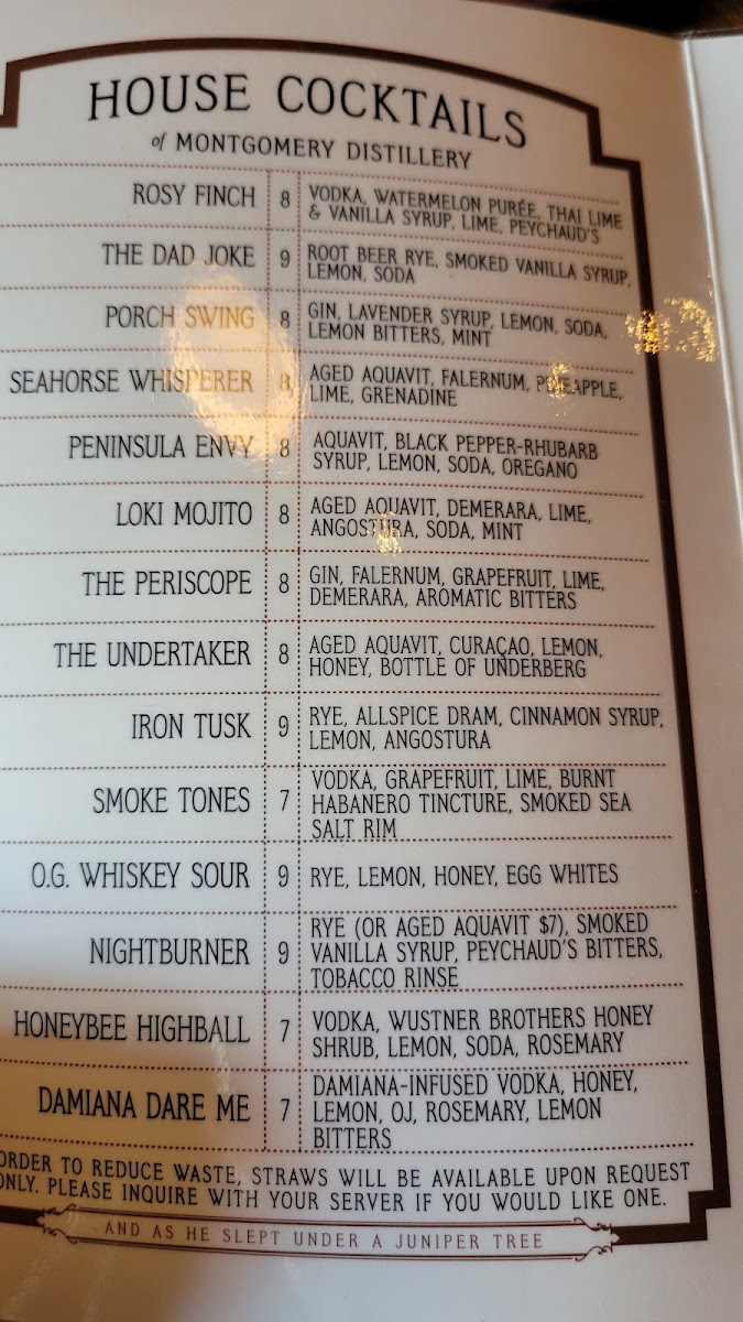 Montgomery Distillery Menu